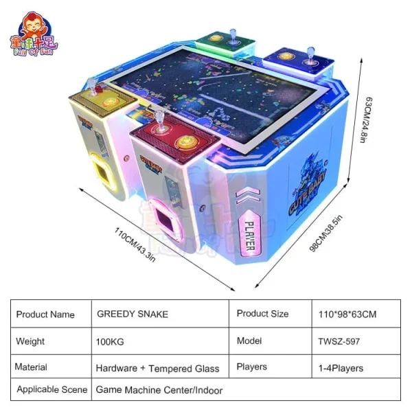 The “GREEDY SNAKE” 4-Player Puzzle Machine is a modern reimagining of the classic arcade favorite, specifically engineered to be a high-earning centerpiece for any entertainment venue. By blending simple, intuitive gameplay with intense multiplayer competition, this machine maximizes player retention and “replayability.” For business owners, it represents a high-ROI asset that requires minimal maintenance while offering a stylish, glow-in-the-dark aesthetic that instantly elevates the professional look of your facility.