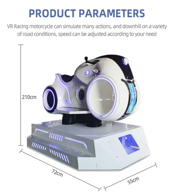 The 9D VR Motion Light-Wheel Motorcycle is a cutting-edge racing simulator that merges state-of-the-art virtual reality with precision engineering. By placing the rider in the heart of the action across five distinct high-octane racing environments, it delivers an adrenaline-fueled experience that traditional arcade games cannot match. For business owners, this equipment represents a low-maintenance, high-yield investment. It lowers customer acquisition costs through its striking aesthetic and builds loyalty through immersive gameplay, helping your venue stay ahead of the competition and achieve rapid payback.