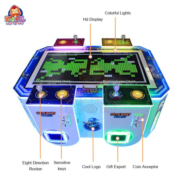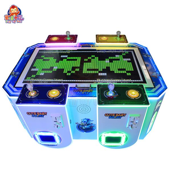 The CUTE BABY ARMY-TANK Redemption Machine is a premium multi-player arcade console engineered to turn foot traffic into revenue. By combining the timeless appeal of tank combat with a modern, compact four-player design, it maximizes “earnings per square foot” compared to traditional single-player units. The core value of this product lies in its ability to drive repeat play through social competition—whether it’s friends battling for the high score or families playing together, this machine is a proven centerpiece for increasing the profitability of any indoor entertainment center.