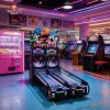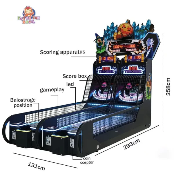 This double-player bowling machine features a dual-lane competitive design paired with high-power surround sound and vibrant LED lighting, creating an immersive head-to-head atmosphere; its durable wood-and-metal construction and intuitive gameplay appeal to all ages, driving massive foot traffic and high profit margins through fast-paced interaction and rewarding ticket payouts.