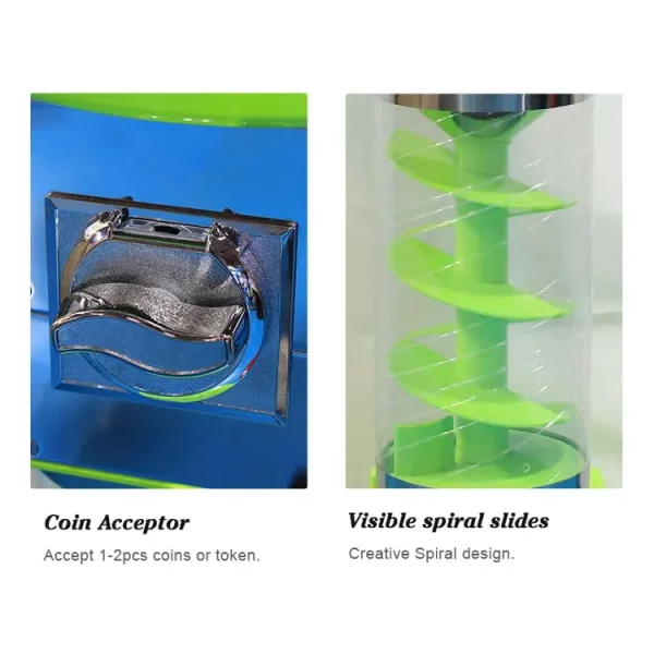 Captivating Spiral Track Design: Features a creative 112cm visible spiral slide. The motion of the capsule winding down the track provides a visual “performance” that effectively captures the attention of children and passersby.