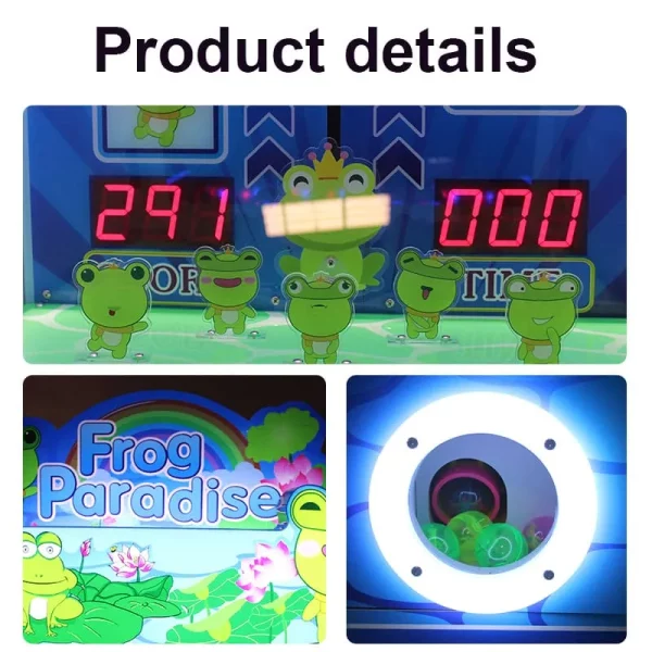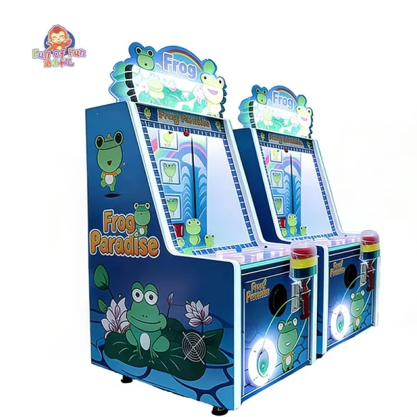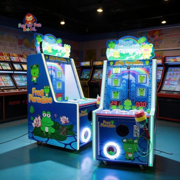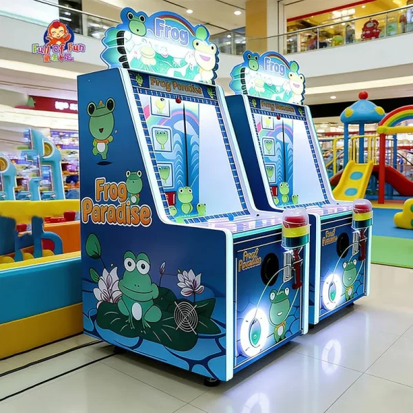The Frog Paradise Kids Whack-a-Mole Machine is a high-interaction amusement device specifically engineered for the children’s entertainment market. By merging the classic “Whack-a-Mole” mechanic with a fresh frog-themed IP, it stimulates physical activity and curiosity in young players. For operators, this machine offers an exceptional footprint-to-revenue ratio, occupying less than 0.7㎡. Its dual-reward system (gameplay + gashapon) ensures high traffic draw and a fast Return on Investment (ROI), making it a perfect addition to malls, arcades, and family entertainment centers.