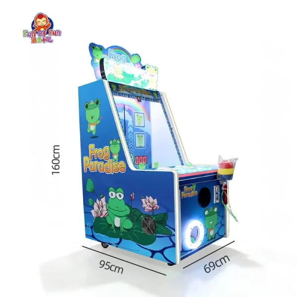 Cute Cartoon-Themed Design:The entire machine features a vibrant blue color scheme, combined with lively and adorable “Frog Paradise” cartoon characters and a lotus pond background, making it highly attractive to children.