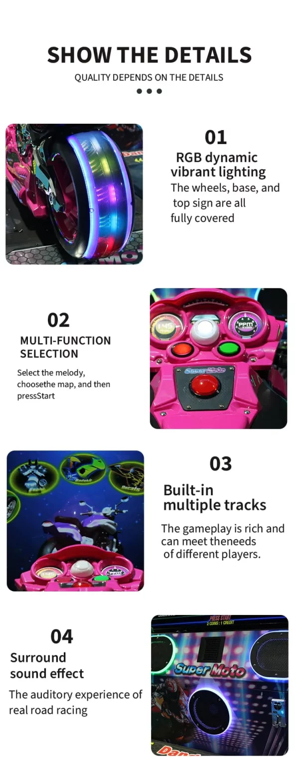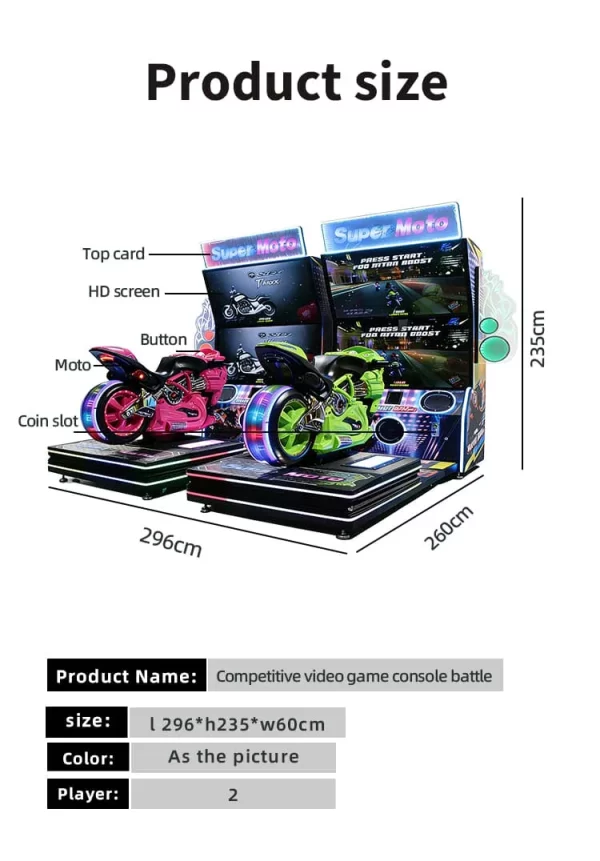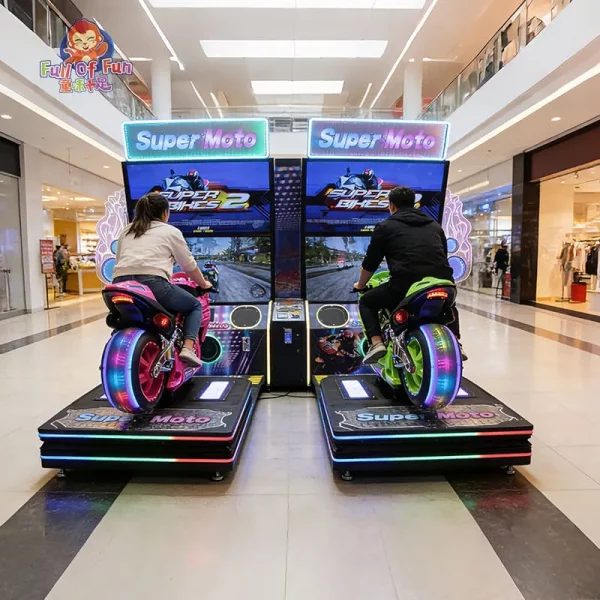 The Super Moto Motorcycle Arcade Machine is a high-octane, dual-player racing simulator designed to be the centerpiece of any modern entertainment venue. Combining cutting-edge visuals with responsive physical feedback, it offers an unparalleled “road-racing” experience for players of all ages.